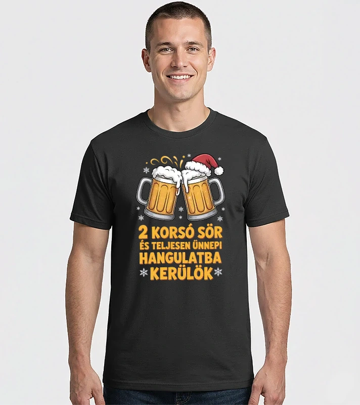 2 korsó sör és teljesen ünnepi hangulatba kerülök pólóminta egyszerűen a Te pólódon is. Válassz további mintáink közül a Humoros szövegek kategóriában, vagy tervezz egyedi pólót online gyorsan! Pólómánia - A Te stílusod!
