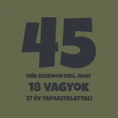 45 - még szoknom kell, hogy... pólóminta egyszerűen a Te pólódon is. Válassz további mintáink közül a 40-50 Évesnek kategóriában, vagy tervezz egyedi pólót online gyorsan! Pólómánia - A Te stílusod!