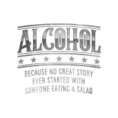 "Alcohol - Because no great story ever started with someone eating a salad"