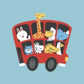 Állatok emeletes buszon
