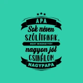 Apa és nagypapa pólóminta egyszerűen a Te pólódon is. Válassz további mintáink közül a Apák napja kategóriában, vagy tervezz egyedi pólót online gyorsan! Pólómánia - A Te stílusod!