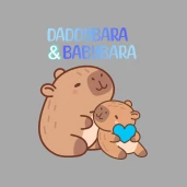 Apabara - Bébibara felirattal Kapibarák ölelkeznek. Apa-fia grafika. Apák napjára.