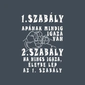 APÁS-SZABÁLY pólóminta egyszerűen a Te pólódon is. Válassz további mintáink közül a Humoros szövegek kategóriában, vagy tervezz egyedi pólót online gyorsan! Pólómánia - A Te stílusod!