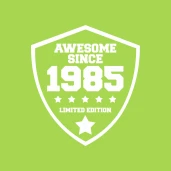 awesome since 1985, limited edition, angol nyelvű születésnapi embléma, pajzs alakú felirat évszámmal