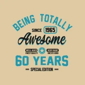 60 years of being totally awesome pólóminta egyszerűen a Te pólódon is. Válassz további mintáink közül a(z) 50-60 Évesnek kategóriában, vagy tervezz egyedi pólót online gyorsan! Pólómánia - A Te stílusod!