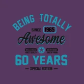 60 years of being totally awesome pólóminta egyszerűen a Te pólódon is. Válassz további mintáink közül a(z) 50-60 Évesnek kategóriában, vagy tervezz egyedi pólót online gyorsan! Pólómánia - A Te stílusod!