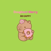Cuki capybara fánkkal, Dougnot Worry Be Hapy (Cappy) felirattal.