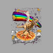 Cat and T-Rex in space on pizza