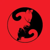 Fekete és fehér cica az egyensúly, a jingjang szimbólumában