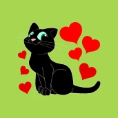 Fekete cica és piros szívecskék minta azoknak, akik szeretik a cicákat és akiket szeretnek a cicák.