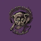 „Ha biztonságra vágysz éjjel, szundíts egy csivavával” - feliratos póló grafika.