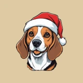 Cuki Beagle mikulás sapkával
