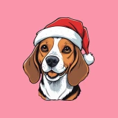 Cuki Beagle mikulás sapkával