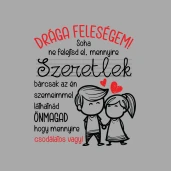 CUKI Drága FELESÉGEM pólóminta egyszerűen a Te pólódon is. Válassz további mintáink közül a(z) Valentin nap kategóriában, vagy tervezz egyedi pólót online gyorsan! Pólómánia - A Te stílusod!