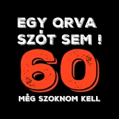 EGY QRVA SZÓT SEM, MÉG SZOKNOM KELL, 60 ÉVES SZÜLETÉSNAPRA pólóminta egyszerűen a Te pólódon is. Válassz további mintáink közül a Születésnap kategóriában, vagy tervezz egyedi pólót online gyorsan! Pólómánia - A Te stílusod!