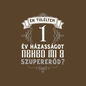 Évforduló túlélő 1 év pólóminta egyszerűen a Te pólódon is. Válassz további mintáink közül a(z) Esküvő és Házasság kategóriában, vagy tervezz egyedi pólót online gyorsan! Pólómánia - A Te stílusod!