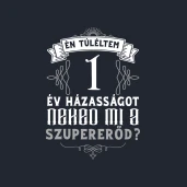 Évforduló túlélő 1 év pólóminta egyszerűen a Te pólódon is. Válassz további mintáink közül a(z) Esküvő és Házasság kategóriában, vagy tervezz egyedi pólót online gyorsan! Pólómánia - A Te stílusod!
