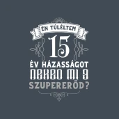 Évforduló túlélő 15 év pólóminta egyszerűen a Te pólódon is. Válassz további mintáink közül a(z) Esküvő és Házasság kategóriában, vagy tervezz egyedi pólót online gyorsan! Pólómánia - A Te stílusod!