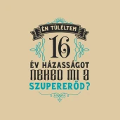 Évforduló túlélő 16 év pólóminta egyszerűen a Te pólódon is. Válassz további mintáink közül a(z) Esküvő és Házasság kategóriában, vagy tervezz egyedi pólót online gyorsan! Pólómánia - A Te stílusod!