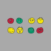 A "Hogy vagy?" kérdésre egyszerűen tudsz válaszolni, ha ezt az IntroGirl pólómintát viseled. Rámutatsz az egyik smiley-ra és meg sem kell szólalnod :-)