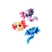Két kedvenc állatomnak a keverékei. Mozaik-, Arany- és GFP Axolotl fajtákról mintázva. Megtalálod őket külön-külön is!