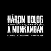 Három dolog amit szeretek a munkámban pólóminta egyszerűen a Te pólódon is. Válassz további mintáink közül a Humoros szövegek kategóriában, vagy tervezz egyedi pólót online gyorsan! Pólómánia - A Te stílusod!