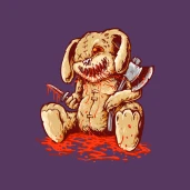 Hátborzongató, véres nyúlbaba, baltával és tőrrel
