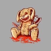 Hátborzongató, véres nyúlbaba, baltával és tőrrel