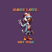 Hippi Kacsa "MAKE LOVE, NOT WAR" Szlogennel Nyomtatott Termékek. Az "MAKE LOVE, NOT WAR" szlogennel díszített Hippi Kacsa Termékek egyedi és különleges kiegészítőket kínálnak, amelyekkel kifejezheted magad. A vicces kacsa dizájn és a béke üzenet egyaránt vonzóvá teszi ezeket a termékeket, amelyek tökéletesek lehetnek ajándéknak vagy saját használatra egyaránt.