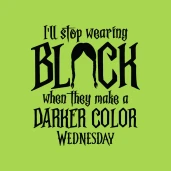I will stop wearing black when they make a darker color pólóminta egyszerűen a Te pólódon is. Válassz további mintáink közül a(z) Wednesday kategóriában, vagy tervezz egyedi pólót online gyorsan! Pólómánia - A Te stílusod!