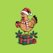 Kakas ajándékkal és kávéval
