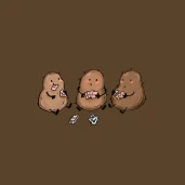 Három krumpli barát vidáman kártyázik.