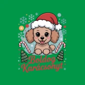 Kiskutyás Boldog Karácsonyt pólóminta egyszerűen a Te pólódon is. Válassz további mintáink közül a Kutyák kategóriában, vagy tervezz egyedi pólót online gyorsan! Pólómánia - A Te stílusod!