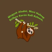 Kora Délben Lajhár pólóminta. Felirat: Megyek aludni, mert holnap délben korán kell kelnem.