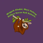 Kora Délben Lajhár pólóminta. Felirat: Megyek aludni, mert holnap délben korán kell kelnem.