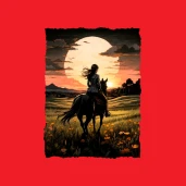 Lovas hölgy a naplementében