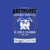 minden asztalos egyenlő SZEPTEMBERBEN pólóminta egyszerűen a Te pólódon is. Válassz további mintáink közül, vagy tervezz egyedi pólót online gyorsan! Pólómánia - A Te stílusod!