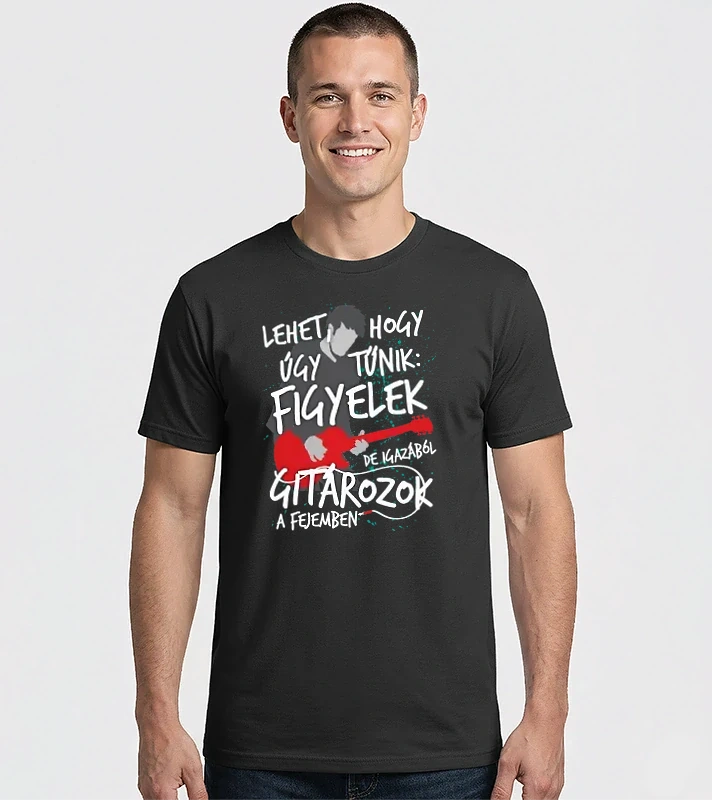 Nem figyelek gitáros pólóminta egyszerűen a Te pólódon is. Válassz további mintáink közül a(z) Gitározás kategóriában, vagy tervezz egyedi pólót online gyorsan! Pólómánia - A Te stílusod!