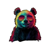 Vagány retró stílusú panda napszemüvegben, élénk neon színekkel. Tökéletes póló, bögre vagy párna mintának.