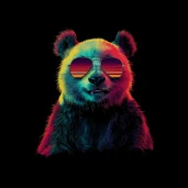 Vagány retró stílusú panda napszemüvegben, élénk neon színekkel. Tökéletes póló, bögre vagy párna mintának.