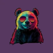 Vagány retró stílusú panda napszemüvegben, élénk neon színekkel. Tökéletes póló, bögre vagy párna mintának.
