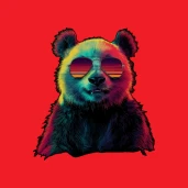 Vagány retró stílusú panda napszemüvegben, élénk neon színekkel. Tökéletes póló, bögre vagy párna mintának.