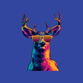 Vagány retro stílusú szarvas napszemüvegben, élénk neon színekkel. Tökéletes póló, bögre vagy párna mintának.