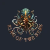 Steampunk póló polippal és "King of the seas" felirattal. A felirat gépi, steampunk stílusban.