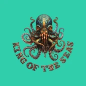 Steampunk póló polippal és "King of the seas" felirattal. A felirat gépi, steampunk stílusban.
