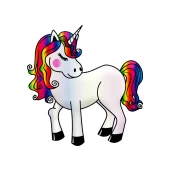 Unikornis szivárvány színű sörénnyel és farokkal.