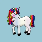Unikornis szivárvány színű sörénnyel és farokkal.