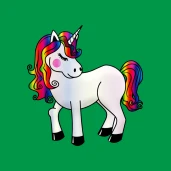 Unikornis szivárvány színű sörénnyel és farokkal.