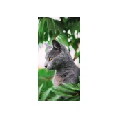 Szürke macska a levelek között