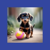 Tacskó kölyök labdával